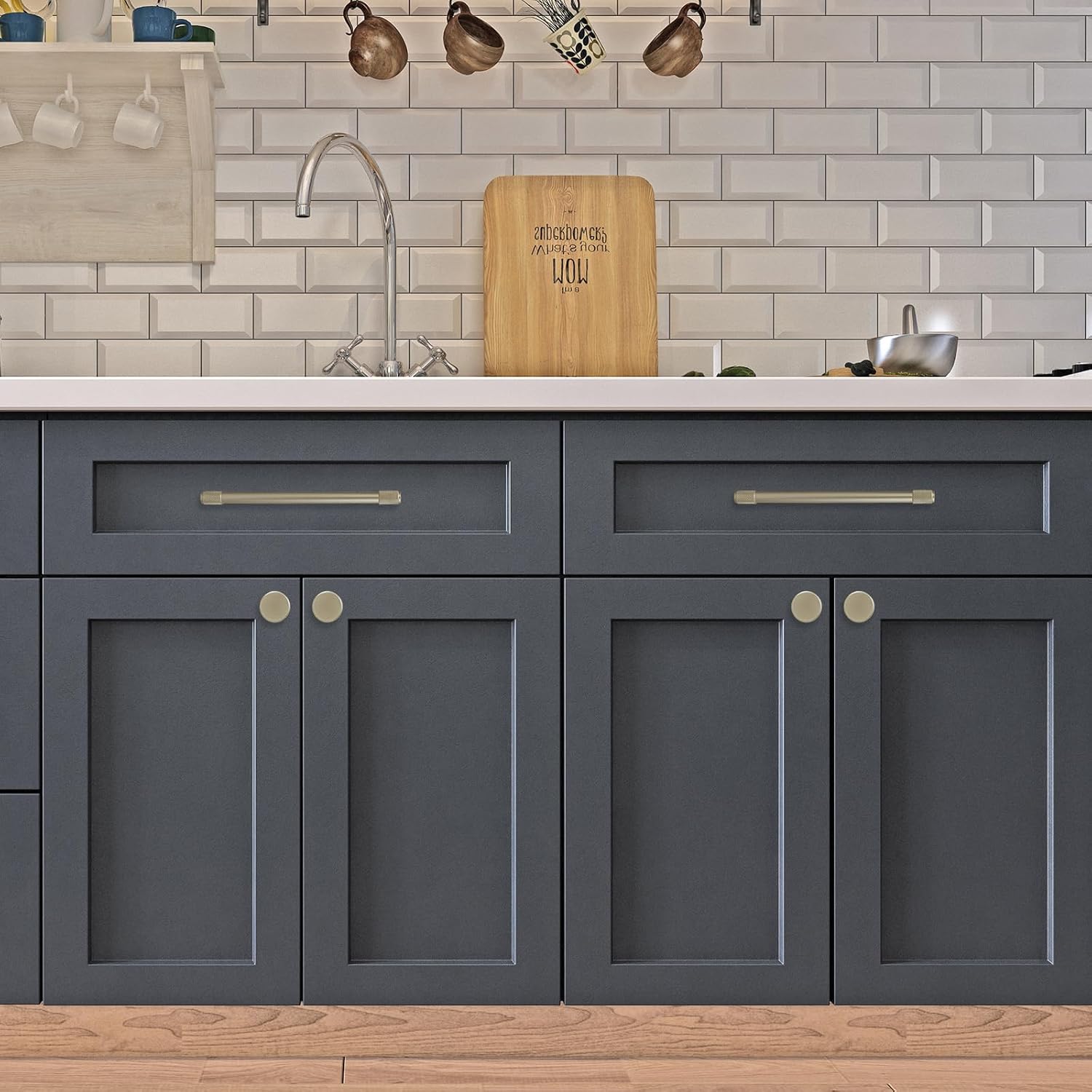 BUKOBYHE 10 Pack 5Inch(128mm) Kitchen Cabinet Handles Brushed Gold Knurled Cabinet Pulls Gold Drawer Pulls Kitchen Hardware