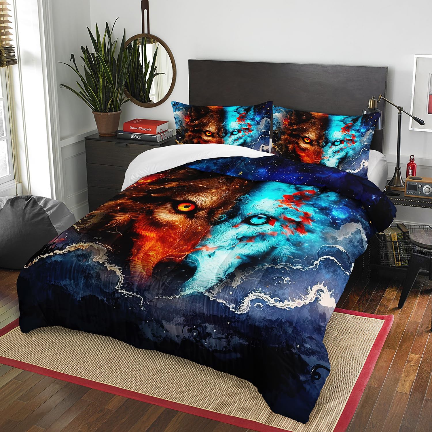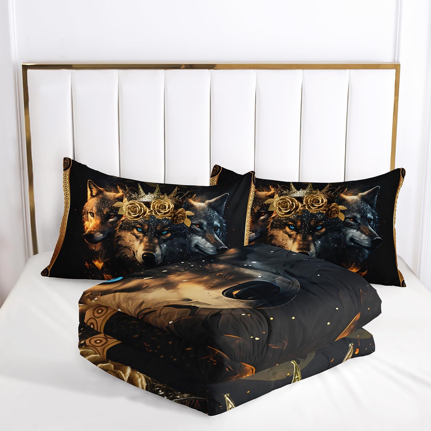 AILONEN Wolf Comforter Set - Queen Size, Native American Wolf Printed Duvet Set with 3 Pieces: 1 Quilt and 2 Pillowcases