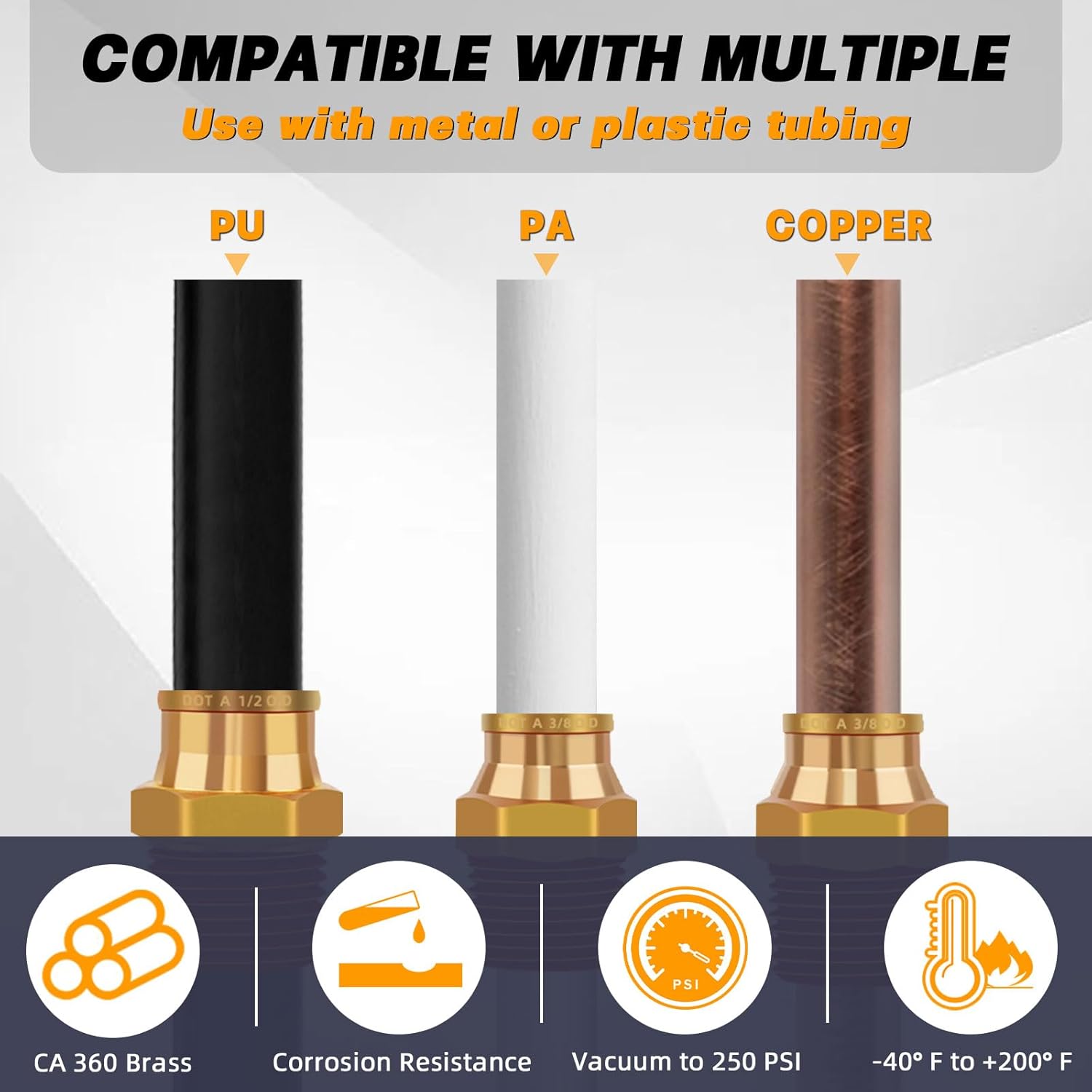 | Included Components | 2 brass bushing 1/4" FNPT x 3/8" NPT, 1 pc Plastic Tubing Cutter, 1 roll (4 meters) Thread Seal Tape., 29 pcs air line tubing kit: 50 feet(15.24m) of black 3/8" OD Air Line, 4 Splitters, 4 Elbows, 4 Tees and 4 Unions, 8 male straight fittings 1/4" and 3/8" NPT Thread |