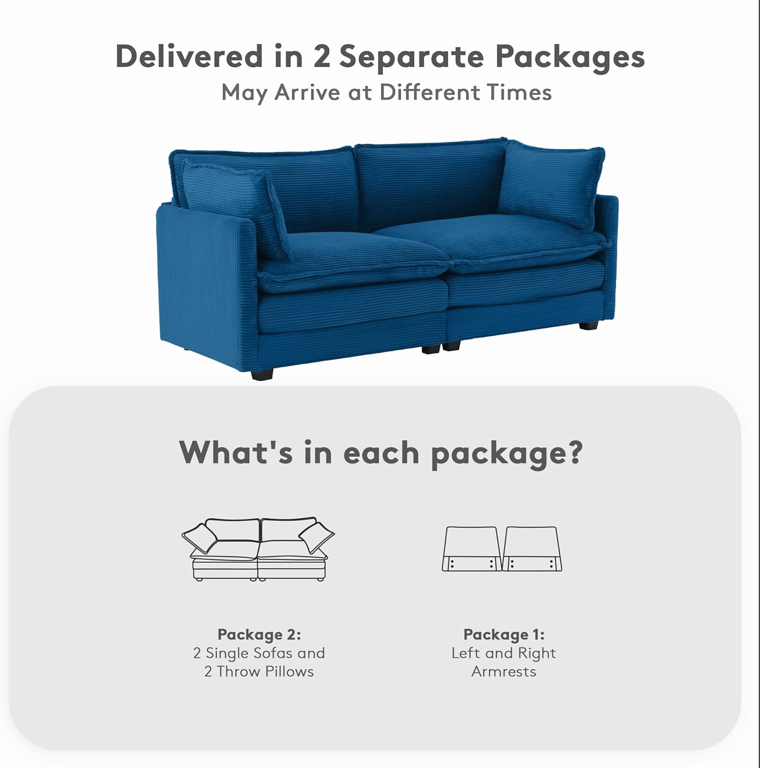 • Delivered in 3 Separate Packages: Package 1 - one single Sofa and one Ottoman. Package 2 - 2 single sofas and 2 throw pillows. Package 3 - Left and right armrests for the couch. Please note that the Sectional Sofa is shipped in 3 packages, which may not arrive at the same time
