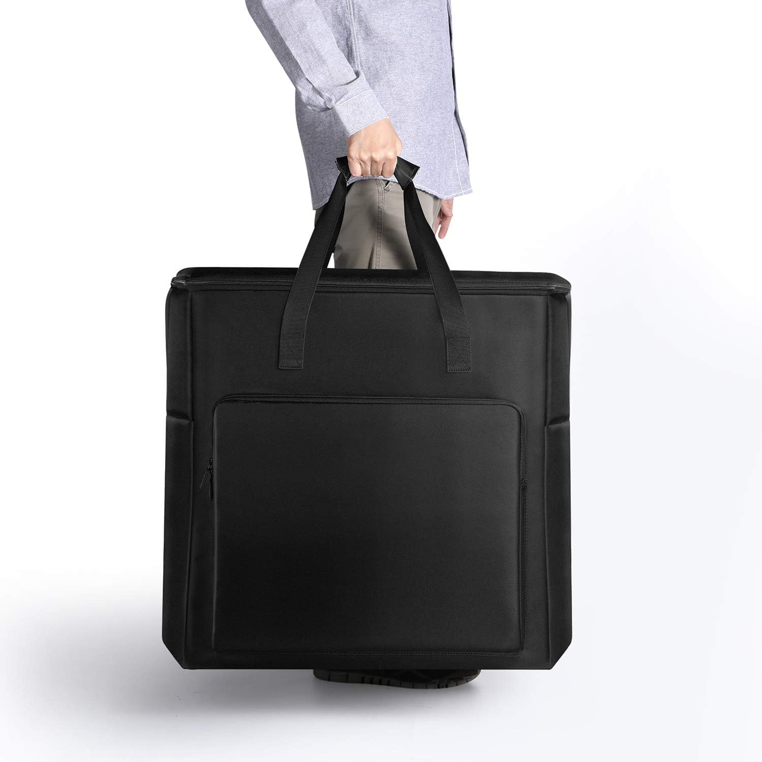 The Buwico BUBM Multi-pocket Large Capacity Desktop PC Computer Travel Storage Carrying Case Bag Organizer is designed to securely transport your 27-inch desktop computer, monitor, keyboard, and numerous accessories. This durable, waterproof, and dustproof bag features a scratch-resistant, wear-resistant fabric and a thickened handle with a stick strap for easy, comfortable carrying. The internal multi-partition design keeps your equipment organized, while the smooth double zipper and four non-slip pads ensure secure storage and retrieval. Measuring 25.2 x 15.75 x 21.26 inches and weighing 1848 grams, this unisex, black bag offers 74.8 liters of capacity. It's backed by a limited lifetime warranty against manufacturing defects.