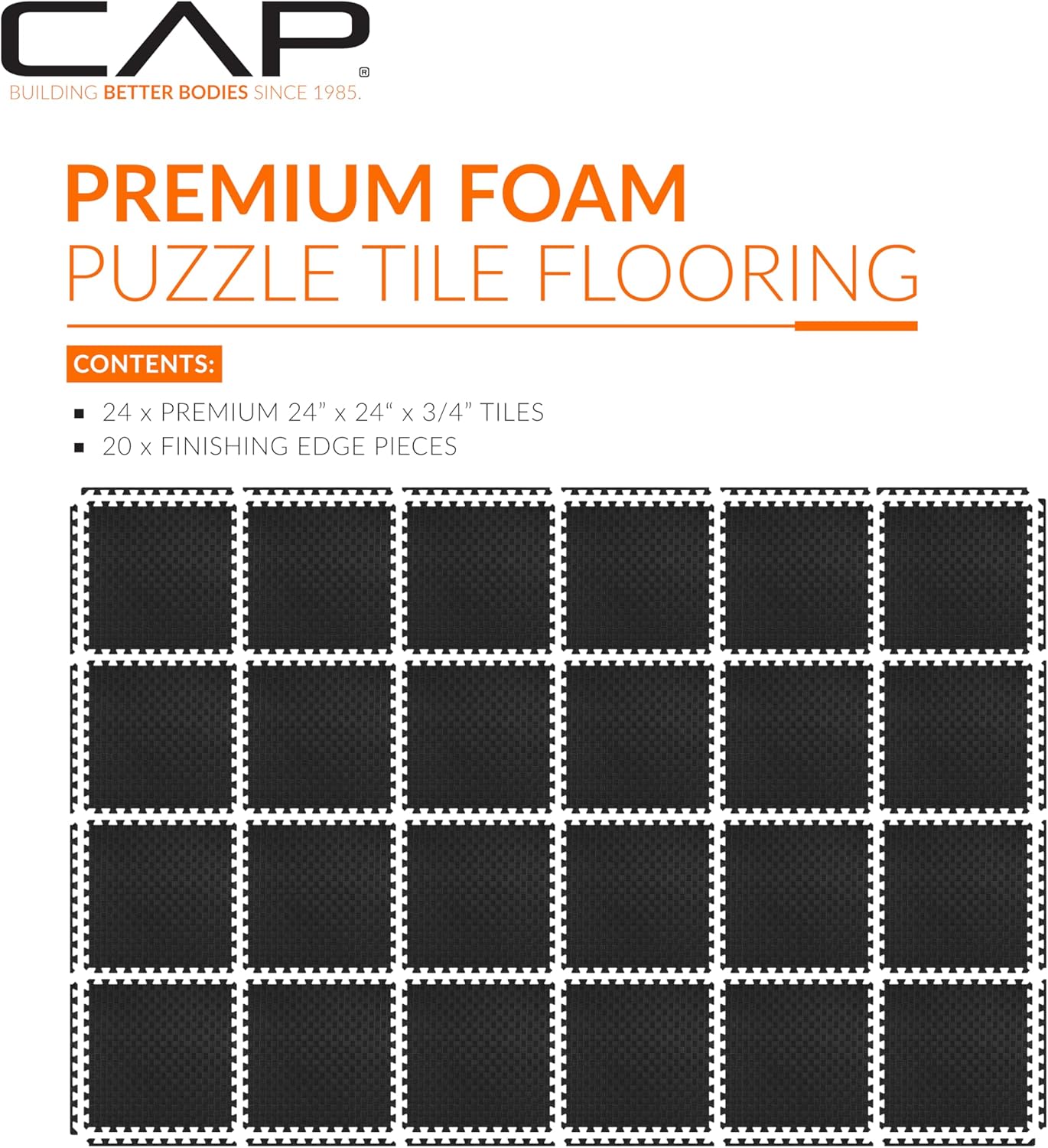 CAP Barbell Interlocking EVA Foam Exercise Puzzle Mat Floor Tiles - 24" x 24" | 1/2", 3/4", & 1" Options | Multiple Pack Sizes