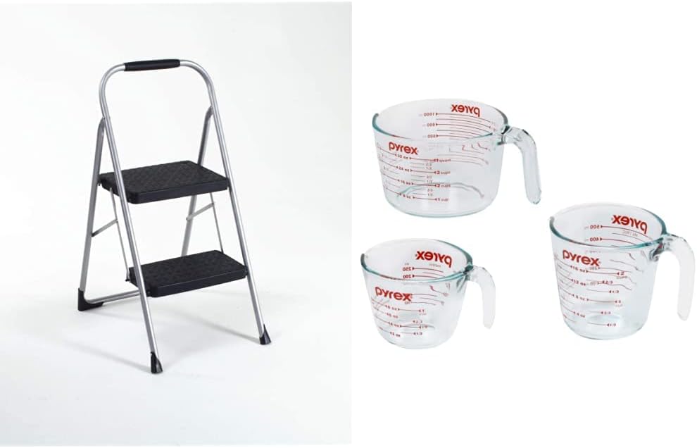 Cosco 11408PBL1E Three Big Folding Step Stool with Rubber Hand Grip, PlatinumThe Big Step Folding Step Stool features extra-large, slip-resistant steps to provide stable footing and make tasks less of a chore. Its lightweight design makes it easy to carry from room to room. Nonmarring leg tips prevent scuffing or damaging floors. Continuous rear leg support enhances stability for increased safety. Foldable design folds flat for easy storage between uses. Step stool is perfect for reaching cabinets, high shelves, light cleaning and more. 200 lb capacityThree step folding steel step stool with large steps with wavy tread featuring a self-locking fold and a compact folded size with a comfortable handle hand grip with a 10-Year limited warranty.OXO Good Grips Large Salad Spinner - 6.22 Qt., WhiteA new spin on our classic design Before the introduction of the OXO Good Grips Salad Spinner in 1998, crank or pull-tab salad spinners were considered high-end products. Some people even used the spin cycle of their washing machine to dry lettuce. Our easy-to-use Spinner transformed the tool into an everyday kitchen essential. Nearly 20 years later, we revisited the Spinner to make some updates while keeping the top features and original inspiration: a children’s top. With a modern design that complements contemporary kitchens and an improved brake that stops on a dime every time, we think you’ll love our new spin on the classic design. Dry salad greens with a simple press of the soft, non-slip knob. The non-slip base keeps the bowl steady on the countertop, and the updated built-in brake button stops the Salad Spinner for unloading. The basket doubles as a colander, and the lid comes apart for easy cleaning.