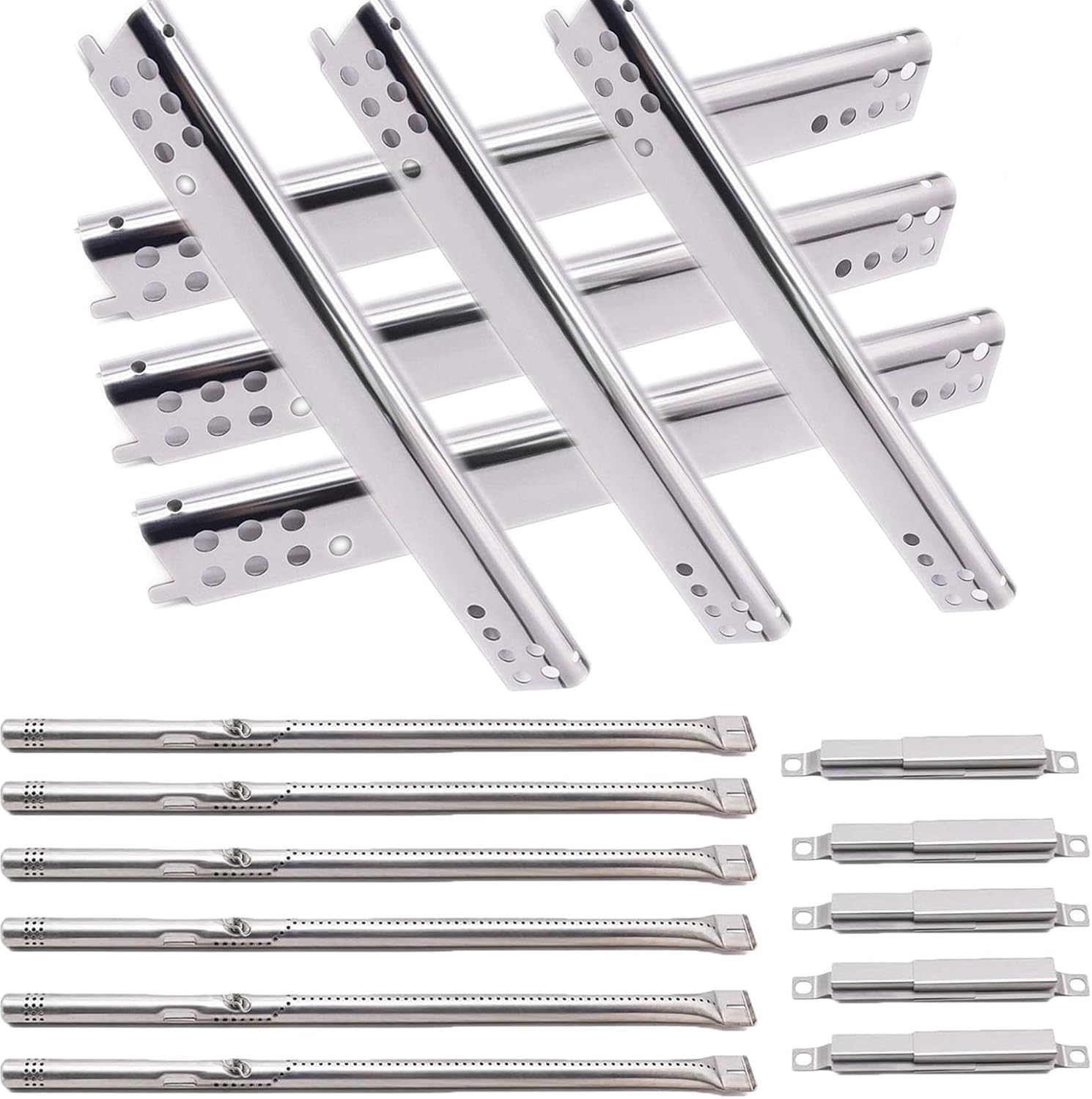 Essential BBQ Replacement Parts You've Been Looking For!☞You must be annoyed and sad when original parts completely rusted and falling apart!☞You must have trouble in the case that it’s very expensive to spend $250.00 plus on a new grill!Well, Give It A Shot and Let Criditpid Repair Kit to Help You with All of Your Problems!What U Will Get:☞5 x Stainless steel grill burners;☞5 x Stainless Steel heat plates;☞4 x Adjustable Crossover Tube;☞2 x ignitorsPerfect Size:★ Stainless Steel Heat Plate Dimensions: 16 15/16" X 2 1/12";★ Stainless Steel Burner Tubes Dimensions: 17 3/4" x 3/5";★ Stainless Steel Crossover Tube Dimensions: Adjustable Extends from 5" - 9";Compatible Models:➤ Charbroil Performance 2 Burner Grills 463625217, 463625219, 463673519, 463673619, 463673019, 463673517, 463673617➤ Charbroil Performance 4 Burner Grills 463347017, 463377319, 463342119, 463335517, 463376017, 463349917, 463376217, 463376519, 463332718, 463347418, 463342118, 463375619, 463377017, 463361017, 463673017, 463376117, 463376017P1, 463377217, 466335517, 466339417, 463376419, 463376319, 463376819, 463332719, 463335519, 463376619, 463376018P2, 463375719 Gas Grill Model;➤ Charbroil Performance 5 Burner Grills 463347519, 463275517, 463243518, 463347518, 463373319, 463243519, 463275717, 463373019, 463673517, 463673017, 463376018P2, 463376117, 463376017, 463673617, 463377117, 463377017, 463347017;➤ Charbroil Performance 6 Burner Grills 463276517, 463244819, 463274619, 463276617, 463238218, 463274819, 463277918, 463274919, 466245917;