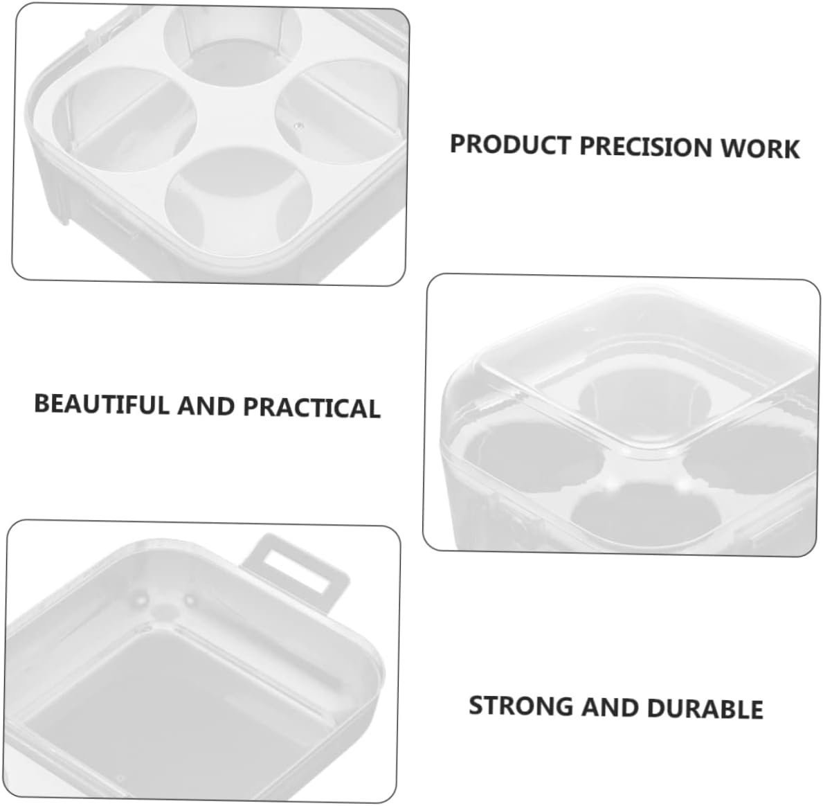Package Include 8 x Egg Boxes Features -Size:9.60X9.60X6.20cm/3.77X3.77X2.44in egg cases -Material:Plastic egg drawer for refrigerator -Color:As Shown egg organizer for refrigerator -The four-case design can separate the egg from the egg, which avoids collisions between the egg from the egg egg holder. -Four-eggs capacity is , keeps you vigorous the whole day egg storage boxes. - for sealing and crush resistance, good for camping, hiking, and outdoor activities egg container for refrigerator. -The Egg Stuck to prevent the collision between the eggs and other objects, protects the eggs desktop storage case. -Due to its lightweight and portability, you can take it anywhere without any pressure refrigerator organizer bin.Goods Informationegg cases It can not only hold eggs, but also good for holding small fruits.refrigerator egg organizer Suitable for taking your eggs to camping, picnic, barbecue and party, almost for all events.refrigerator egg storage bin This Egg Storage Box is for packing and transporting eggs.egg storage holder If you are searching for a solution for saving your egg in the fridge, almost every egg smash each other every time you open the fridge door