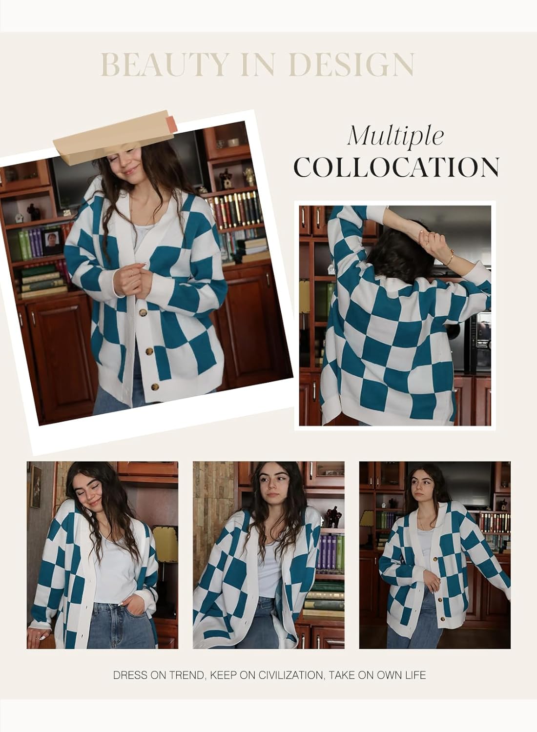• Feature: V Neck, Button Down, Long Sleeve, Oversized Fit, Plaid Design, Cable Knit Cardigan