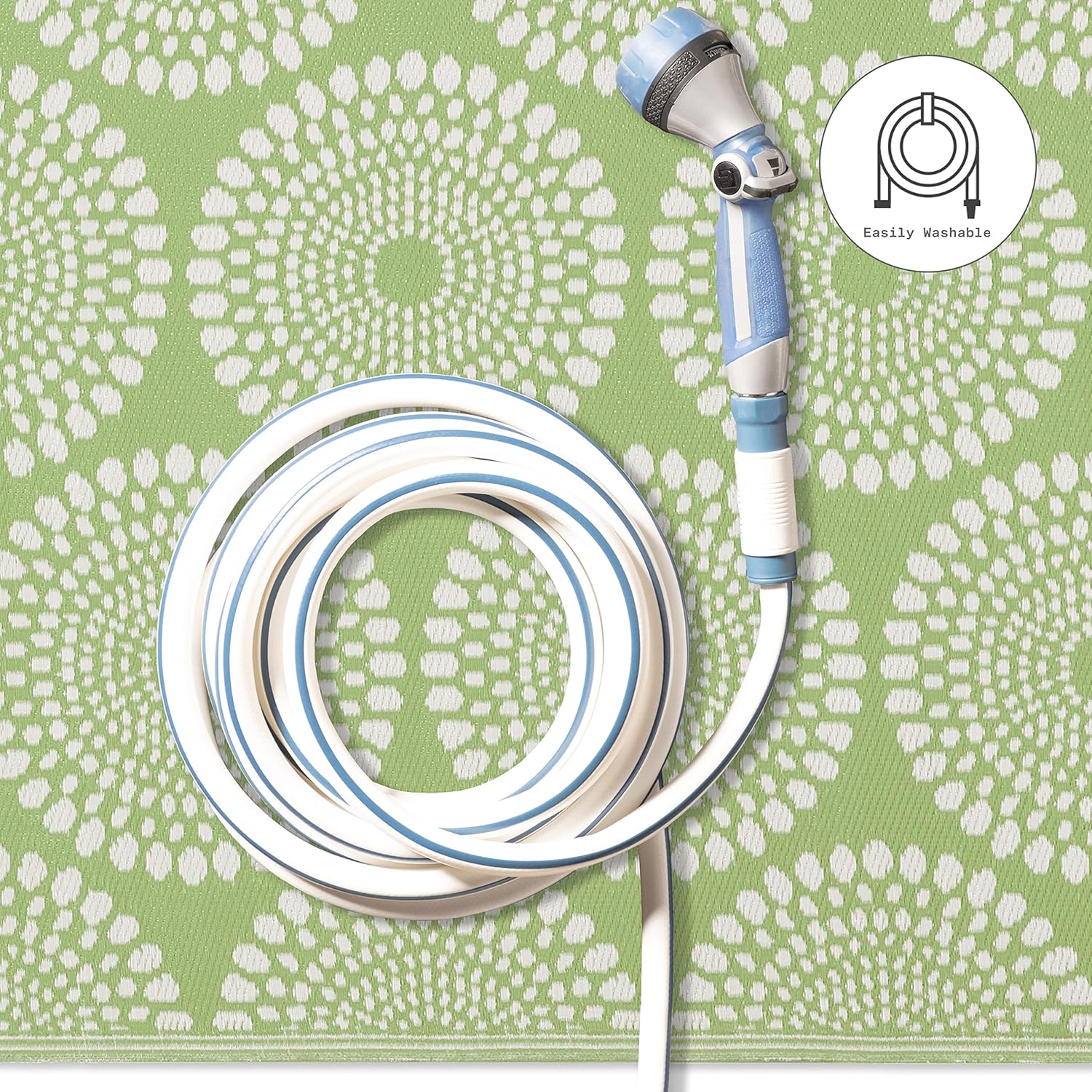 | Product Care Instructions | Washable: Just shake or hose off with water & mild detergent. Since moisture is not absorbed by the rug, your rug will dry off quickly in the sun. |