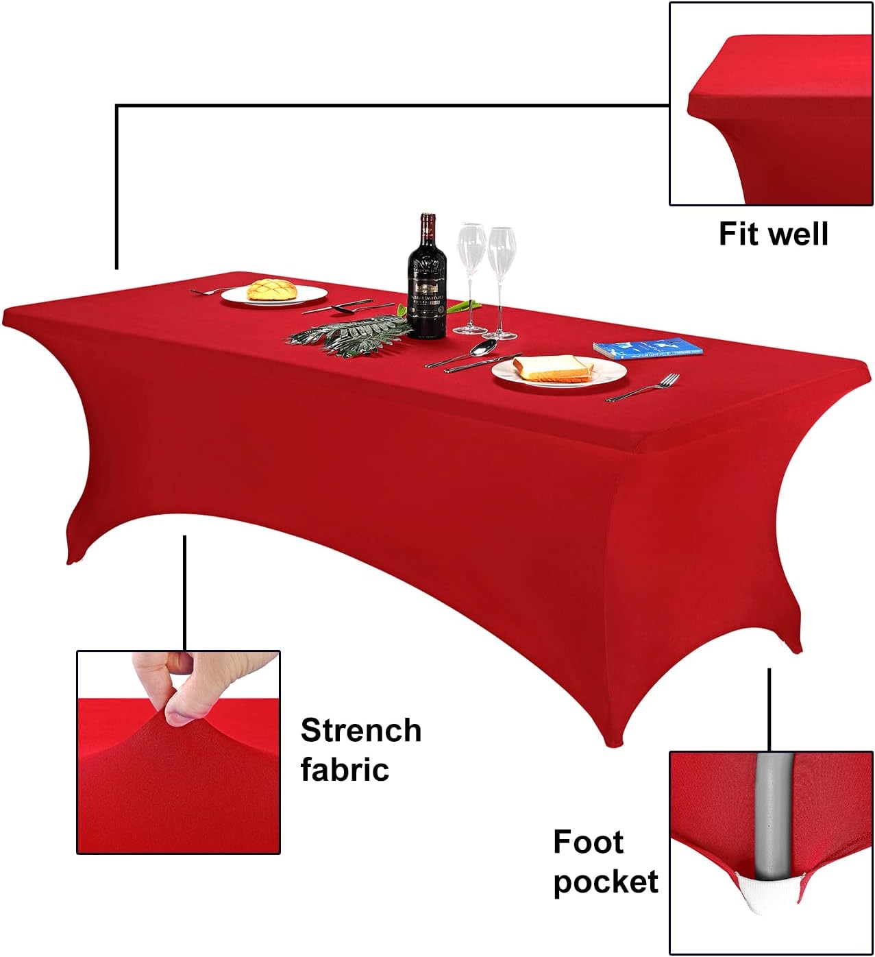 • Stretchy Fabric & Foot Pocket Design makes the table cover fit well with the table and stay in place. It's easy to install and absolutely a time-saving choice for decorating parties.