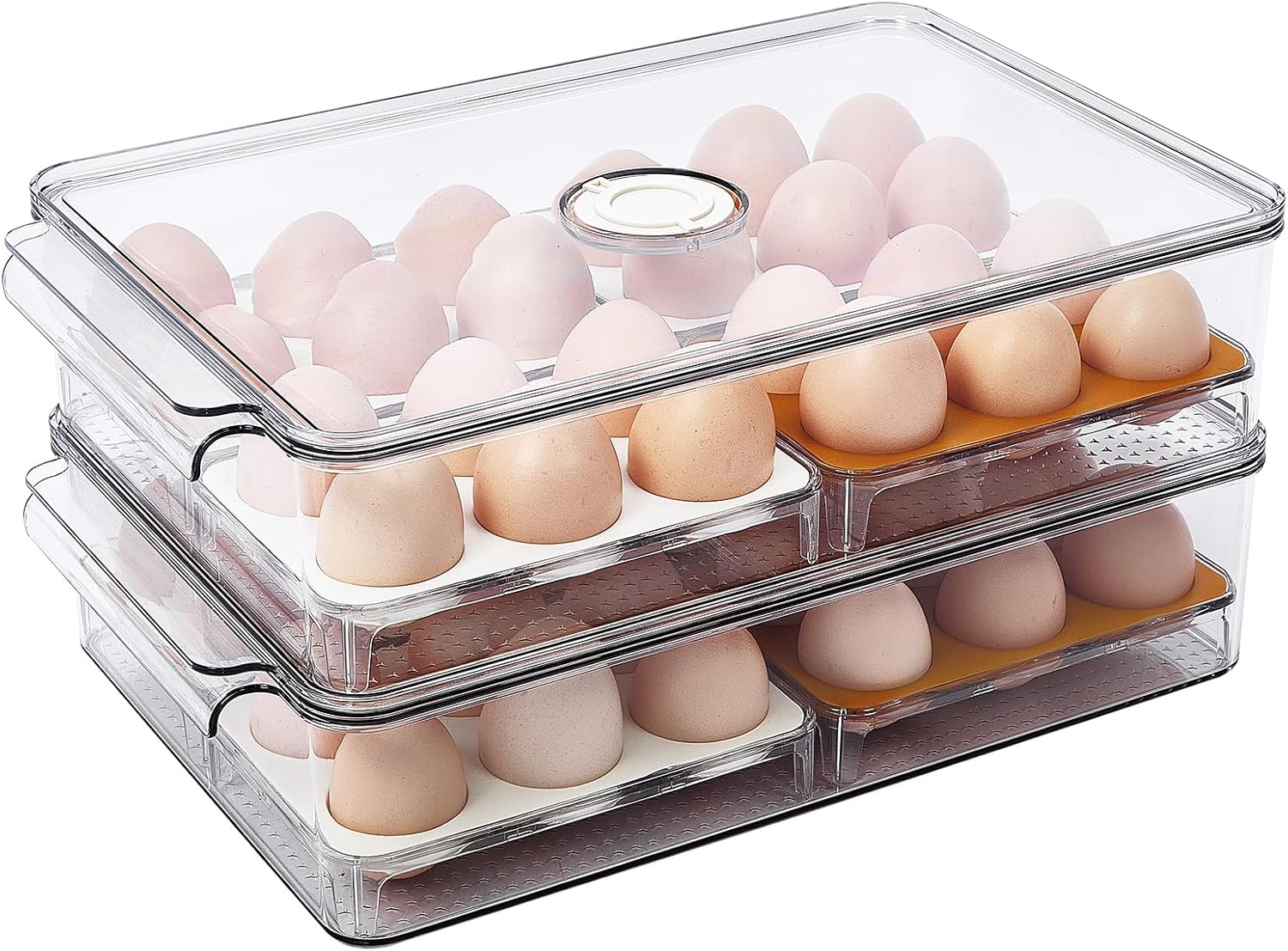 • Space-Saving Design: Optimizes fridge space with a compact, stackable structure that keeps your eggs organized and easily accessible.