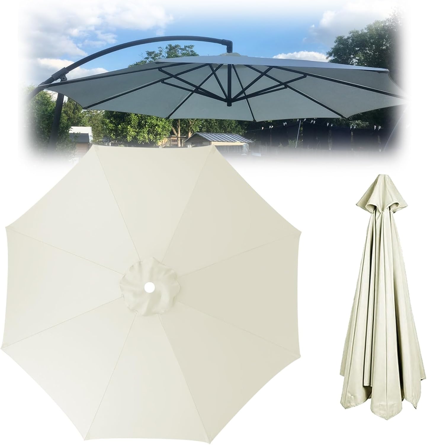 - Material: Durable polyester fabric (180 g/m²)- Dimensions: Available in 2 m, 2.30 m, 2.5 m, 2.7 m, 3.0 m, and 3.5 m- Number of ribs: Choose from 6 ribs or 8 ribsFeatures:1. UV resistant and breathable design that provides sun protection while allowing cool breezes to flow through.2. The umbrella top cover is designed for easy installation. You’ll be amazed at how quickly and simply it can be set up, requiring minimal assistance and just a few minutes.3. Perfect for enhancing your courtyard, terrace, pool area, and other outdoor spaces.Package includes: 1 umbrella replacement canopy.