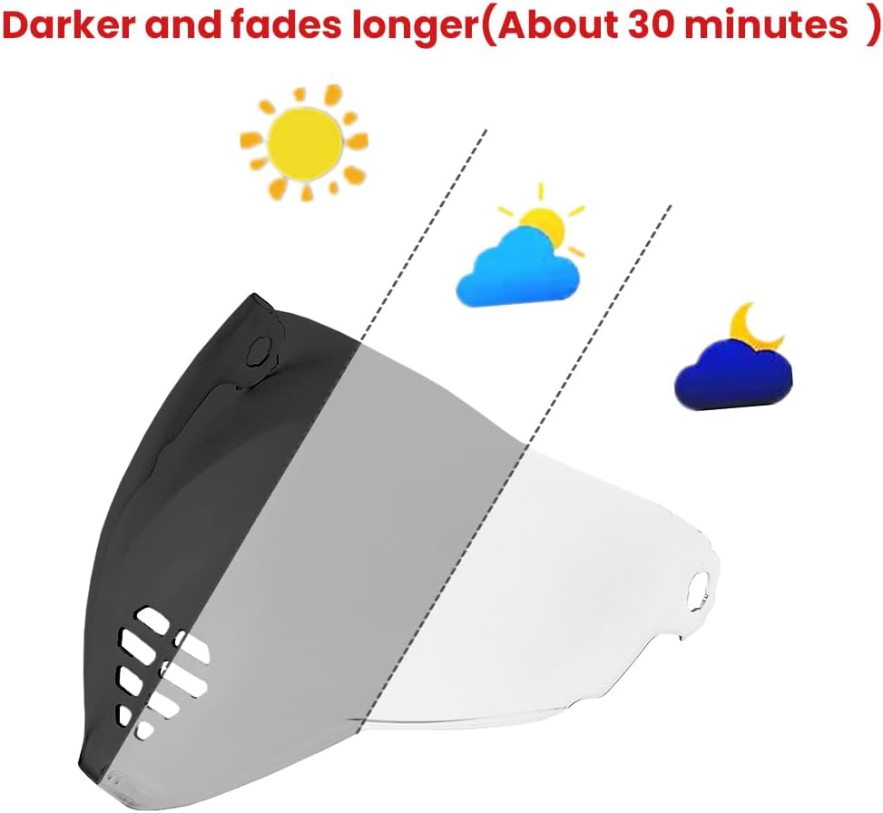 • 【Windproof & Dust Proof】:Motorcycle helmet visor fits perfectly with the helmet frame. No need to worry about wind and dust coming through the little cracks in your helmet,allowing you to see clearly ahead and avoid dangerous situations.This product has no affiliation to the OEM manufacture or Brand