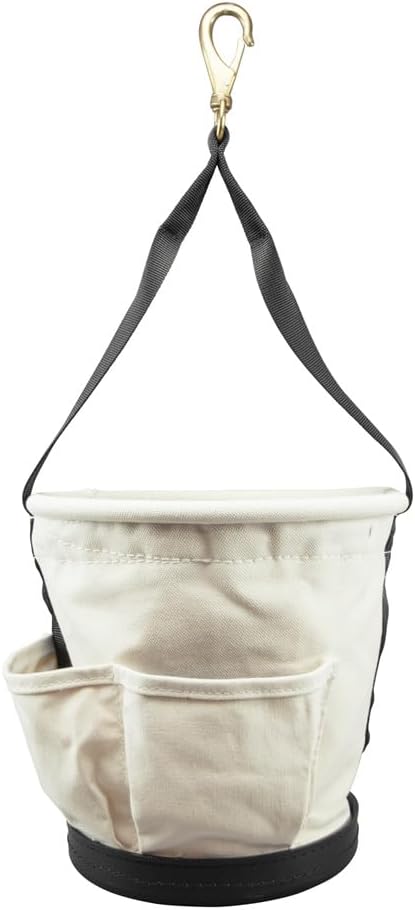 Product Description The Klein Tools 12-Inch Tapered Wall Bucket features 15 inside pockets for organizing your tools (not included). Constructed of tough #4 canvas, this soft-sided bag provides durability while on the job. The web handle extends down the sides of the bucket for added strength and includes a swivel snap hook. For more than 160 years, Klein Tools has manufactured premium-quality, professional-grade hand tools that deliver the performance, durability and precision needed to get the job done right. Our family of engineers, workers and craftsman continue to put six generations of expertise into every tool we create by using only the highest quality materials, superior workmanship, and keeping manufacturing as close to home as we can. Klein isn't just the name of our company, it's also our family name. And since we're an American company that's family-owned and family-run, you know you can count on us to be here tomorrow. Klein Tools doesn't just make great products, we make great products that stand up to the demands of the professionals who use them every day ... Since 1857. From the Manufacturer The Klein 5172PS Heavy-Duty Tapered-Wall Bucket with Pockets is made out of tough No. 4 canvas and has a black molded polypropylene bottom. It has a rope handle and a riveted leather glove strap. It comes equipped with catalog No. 2012 swivel snap hook. Since 1857, the company operated by Mathias Klein and his descendants to the fifth generation, has grown and developed along with the telecommunications and electrical industries where Klein pliers first found major usages. Today, Klein Tools, Inc. represents much more than Klein pliers. The company's product line has broadened to include virtually every major type of hand tool used in construction, electronics, mining, and general industry in addition to the electrical and telecommunications fields. Internationally, Klein's products are available around the world through a well-established network of agents and distributors who stock the products that are required for their particular markets. Klein's reputation as a leading producer of professional-quality products is global.