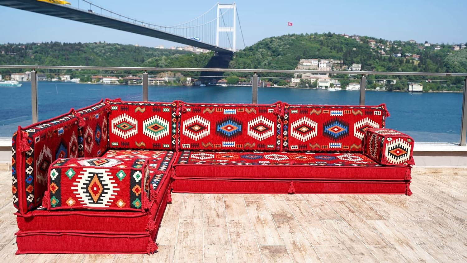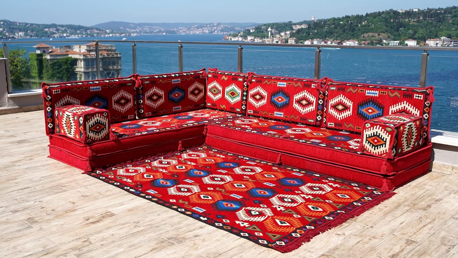 You will receive products in the variant you selected from the listing page. This sofa set comes in 14 separate pieces. If you choose 'L Sofa Full Set / 4'' Thickness' you will get these: -2 Floor Seating Cushions (190 x 70 x 10 cm / 75 x 27 x 4 inch) -4 Backrest Pillows (95 x 40 x 10 cm / 37 x 16 x 4 inch) -1 Backrest Pillows (60 x 40 x 10 cm / 24 x 16 x 4 inch) -2 Armrest Pillows (50 x 20 x 20 cm / 20 x 8 x 8 inch) -1 Matching Rug (140 cm x 210 cm / 55 x 83 inch) -1 Ottoman Couch (60 x 60 x 20 cm / 23 x 23 x 8 inch) -3 Pouff Pillows (70 x 50 / 27 x 20 inch) * The floor sofas are not freestanding, they need to lean against a wall or something hard behind * We can customize this product upon your request * All covers include their foam filling inserts * All covers are zippered * Beautiful texture and soft to touch * Comfortable to sit or sleep on * Top-quality finish and workmanship * Excellent for homes, offices, hotels, cafeterias, etc. * Machine washable