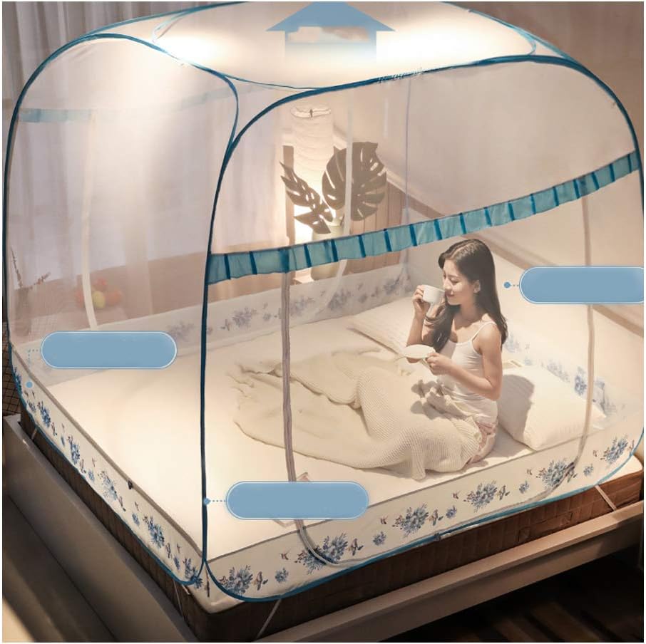 mosquito nets, free installation mosquito cover, large space, encrypted netting, 720° mosquito-proof, anti-falling bed, double-door design, suitable for family/dorm/camping. If you travel in summer or tropical areas where malaria is prevalent, mosquito nets are the best protection against mosquito bites, malaria and other mosquito-borne diseases.PRODUCT PARAMETERProduct name: installation-free mosquito netFabric material: polyesterProduct support: plastic coated high-elastic steel wireProduct features: spare parts, free installationProduct packaging: mosquito net*1Applicable bed size::1.2m bed: 200*120cm/78.7*47.2*in1.5m bed: 200*150cm/78.7*59.0in1.8m bed: 200*180cm/78.7*70.8in1.8m bed: 220*180cm/86.6*70.8inINSTALLATION STEPS1. Take out the packing bag and open the storage strap2. Slightly shake the mosquito net to bounce off naturally3. Adjust the mosquito net slightly, install the steel ring on the top of the net4. Fix the four-corner straps around the mattress100% Satisfaction: We always keep our strive to provide our customer satisfied shopping experience.If you have any questions, please feel free to contact us.We will reply within 24 hours and give you a satisfactory solution.