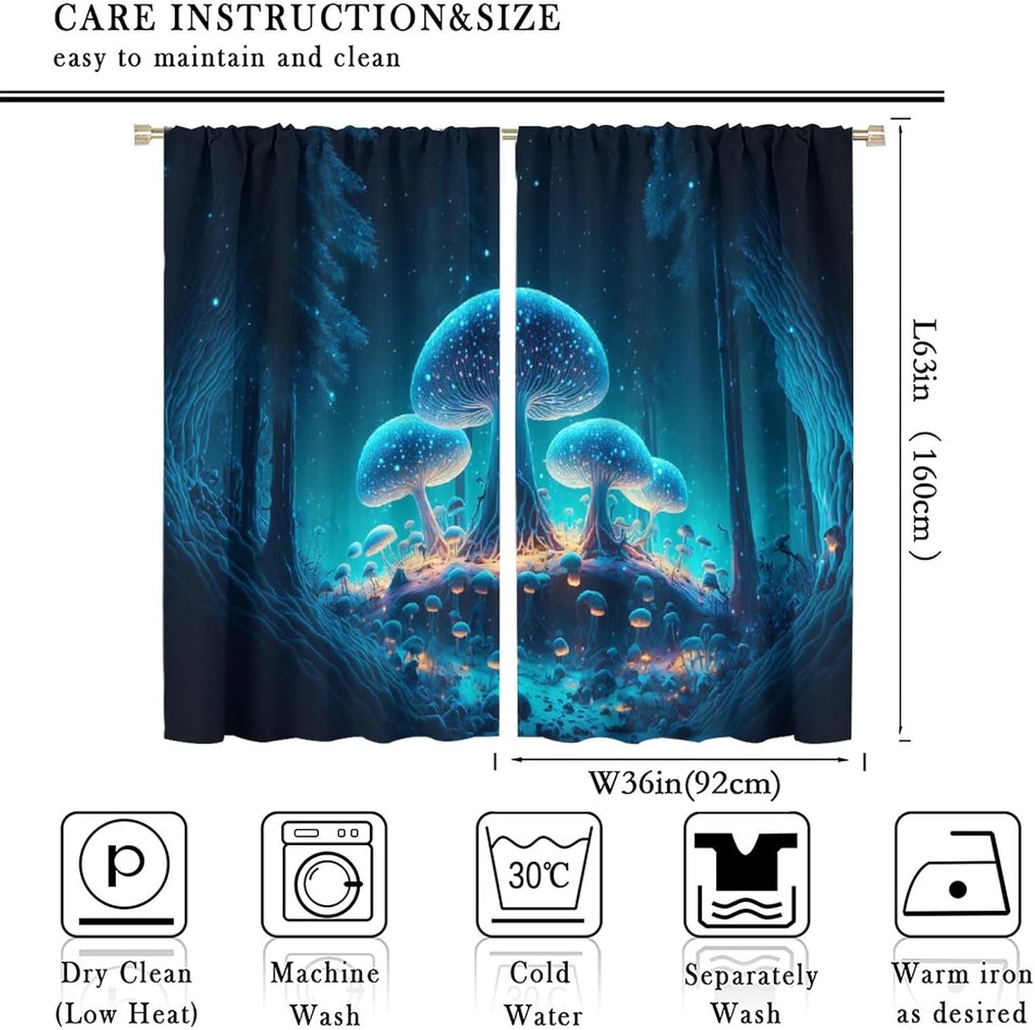 Privacy and Relaxation: Whether you want to block out sunlight, take a nap, or prevent sun glare on your TV, these curtains are the perfect choice.Superior Light Blocking: Made from polyester material, these curtains effectively block out external light, creating a comfortable and dark environment that is especially suitable for quiet reading or napping.Easy Cleaning: Simply wash these curtains in cold water on a gentle cycle and iron on low heat to remove any wrinkles. Avoid using bleach or dry cleaning. There’s no need for extra effort to maintain these curtains.Thorough Inspection: We conduct a comprehensive inspection of each curtain before shipping to ensure flawless quality.Customer Satisfaction Guarantee: If you have any questions or suggestions, please don’t hesitate to contact us via email. We are committed to providing exceptional customer service and ensuring your satisfaction.