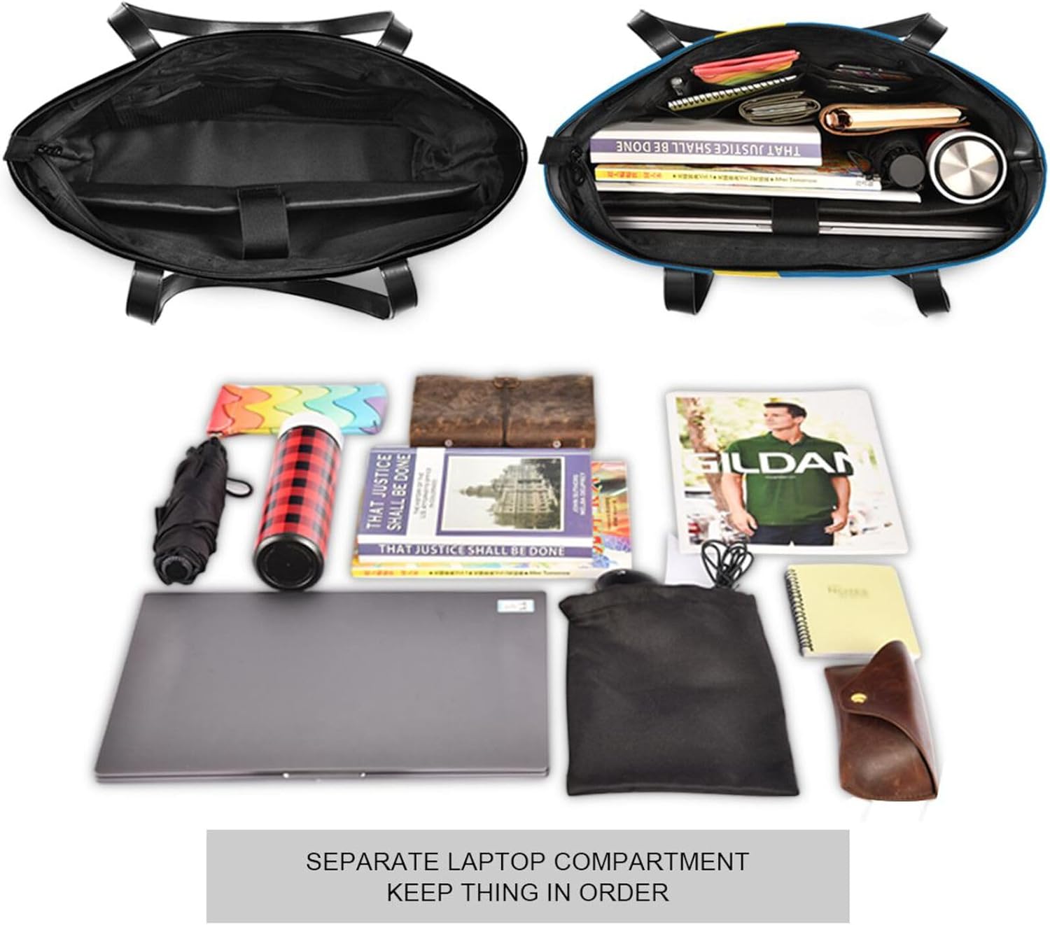★OPEN-TOP, tote bag with large capacity measures 14.6*5.1*11.8 inches, roomy enough for everyday items while not too big for awkward carry. Heavy duty shoulder strap measures 11.4 inches long.★Zipper Closure & Many Pockets:We designed this pool bag to hold everything you need for a day on the beach /pool. 1 transparent PVC zippered internal pocket keeps your cell phone, keys and money safe and dry. Side pockets can fit water bottles or slippers.★Multi-Pocket Laptop Tote Bag:The laptop tote bag for women has a independent padded laptop compartment fits up to 14 inch laptop. The main compartment designed for documents, magazines, umbrella, water bottle and more office supplies. Insulated lunch compartment easily fitting your lunch box, drinks and fruit. The zippered back pocket for your important item like passport, plane ticket, wallet and cards.★LIGHT WEIGHT BUT STURDY: It can fit all the towels, swimming gear, beach toys, water shoes, water bottles, sunblock, goggles and even has room left!★MULTIPLE USES: suitable for bridesmaid, bridal shower, birthday, beach, holiday, bachelor party, is a great Gift women, Mothers, teacher, wife, daughter, sister and friends.