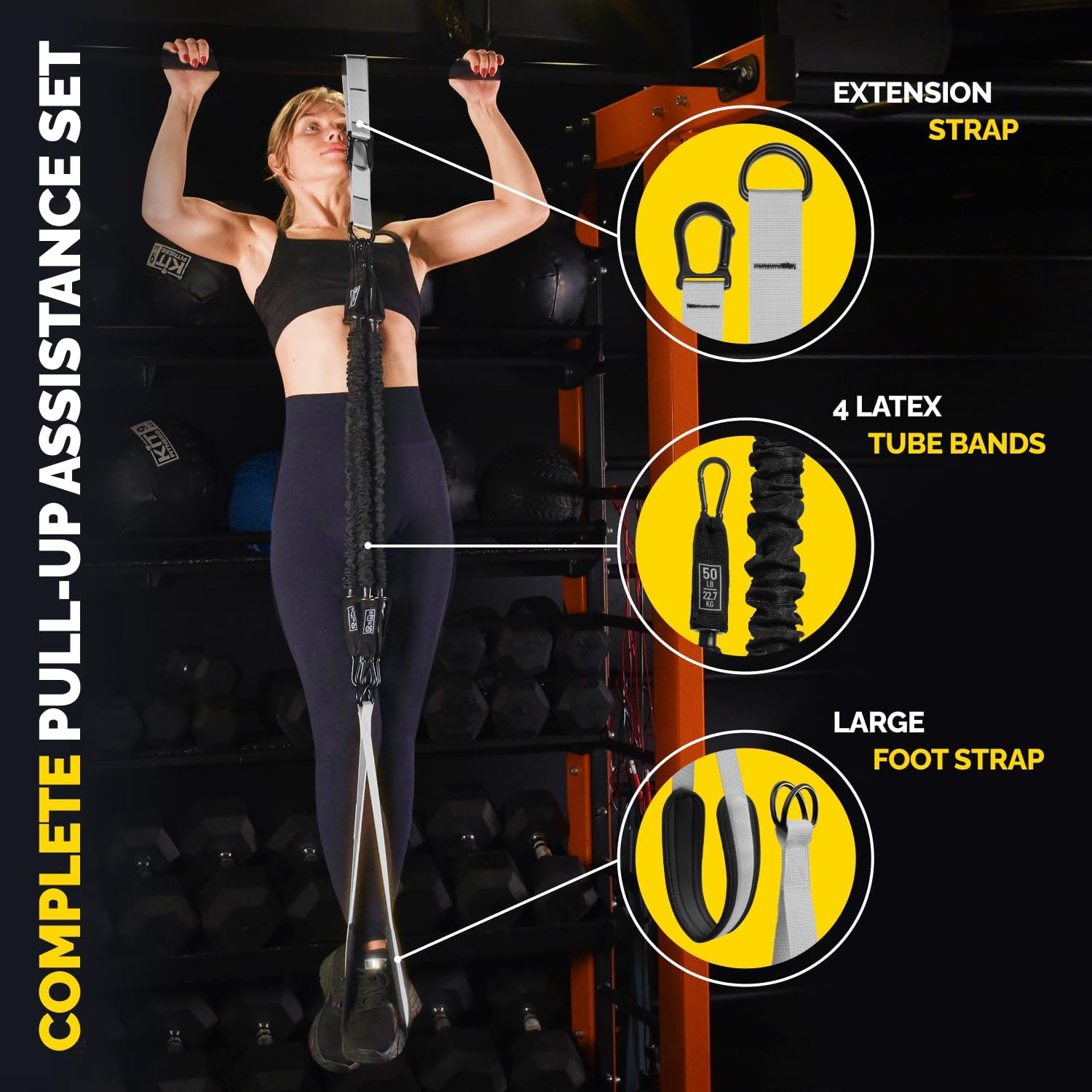 Master the Pull Up, Accessorize your Gains Craft your ideal upper body workouts with Tribe Lifting's Pull Up Assistance Set. This comprehensive pull up helper includes everything needed to scale your training; four stackable assisted pull up resistance bands can be stacked for up to a 200lb challenge. The durable nylon sleeve and robust metal carabiners enhance safety and longevity. Ideal for both men and women, these bands for pull up assist is the must-have addition to your at home pull up bar routine, bridging the gap between your current abilities and your fitness goals. Your Ultimate Bands for Pull Up Assistance Tribe Lifting's Pull Up Assistance Set revolutionizes your chin up regimen. Featuring a length-adjustable strap with cushioning for the foot for added comfort and double metal rings for fortified strength, these assist bands for pull ups make the challenging feasible. Whether you're using a ceiling pull up bar or any at-home setup, the heavy-duty construction and versatile resistance levels of up to 200lb cater to all levels. Elevate your workouts with the indispensable pull up bar assistance bands. Conquer New Heights with Assisted Pull Up Bands Unlock the true potential of your pull up workouts with the innovative Tribe Lifting Pull Up Assistance Set. Designed with the ambitious athlete in mind, this all-inclusive pull up assist bands set features a wide foot strap and pull up assist resistance bands that adapt to your skill level, offering up to 200lb in assistance. The inclusion of a high-quality protective sleeve and metal carabiners ensures top safety. Empower yourself with the reliability to push boundaries and achive the perfect pull up every time. -6-piece pull up assist set -Adjustable-length with comfort padding foot strap -4 stackable resistance bands (up to 200lb) -Durable nylon sleeve, heavy-duty carabiners -Double metal rings, suitable for all genders