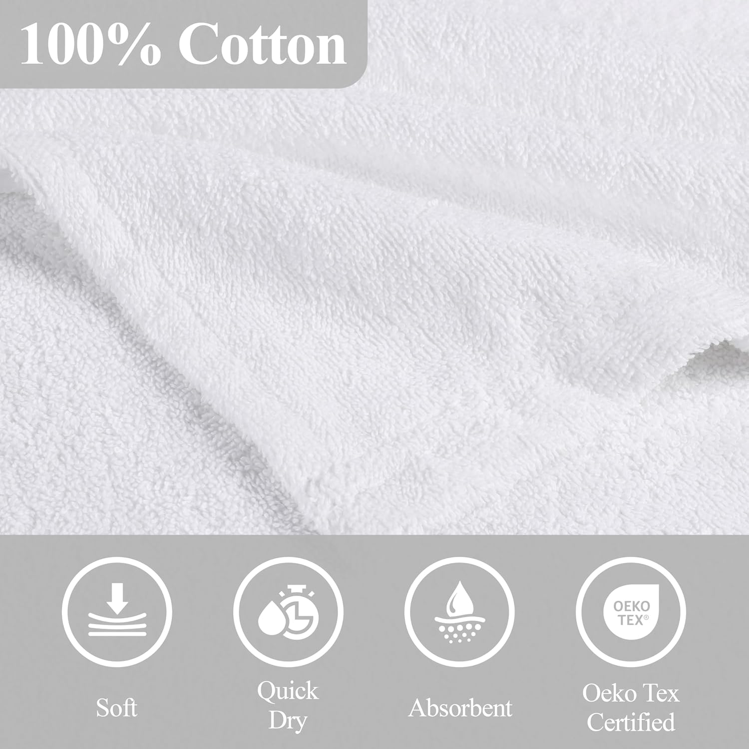 | Special Feature | Breathable, OEKO-TEX Certified, Ultra Soft, Highly Absorbent, Twistless Cotton Loops |