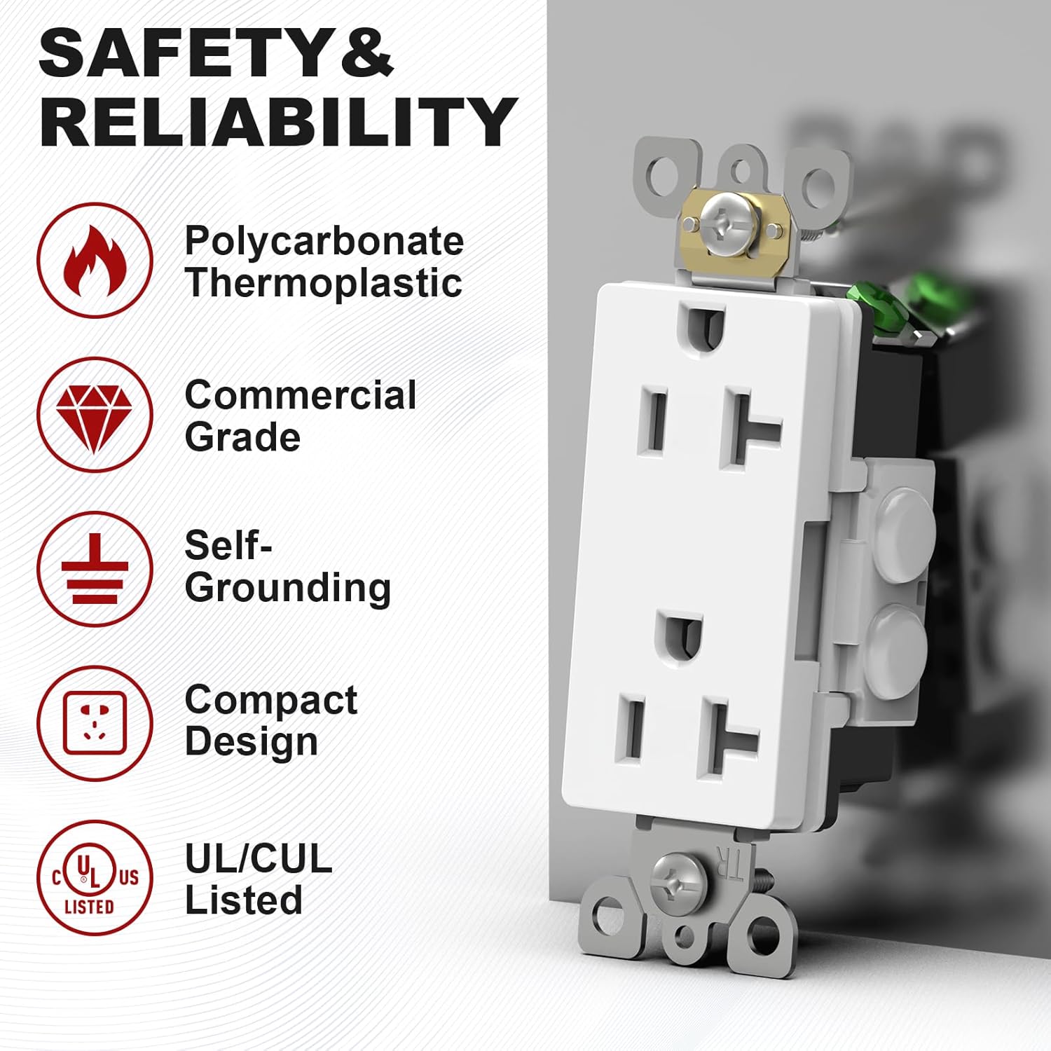 UL & CUL LISTED:Designed and tested in accordance with UL498 requirements. Increase the safety of your electrical system by using this UL certified ThunderWay white wall outlet