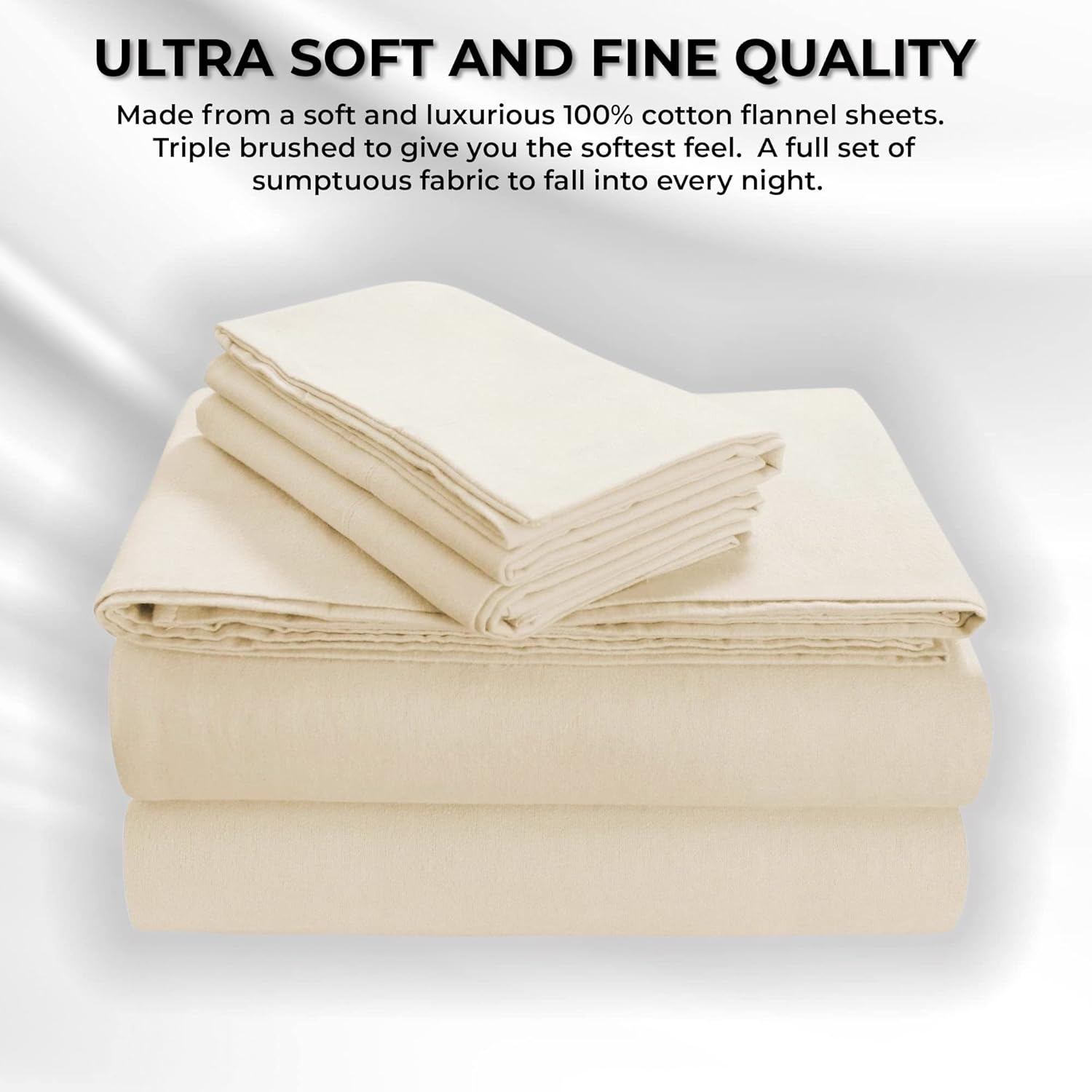These flannel sheets are designed of triple-brushed 100-percent cotton for the softest finish and feel. 170 Gram weight for warm comfort on even the coldest nights. All around elasticized extra deep fitted sheet to fit extra deep and pillow top mattresses up to 24" deep.