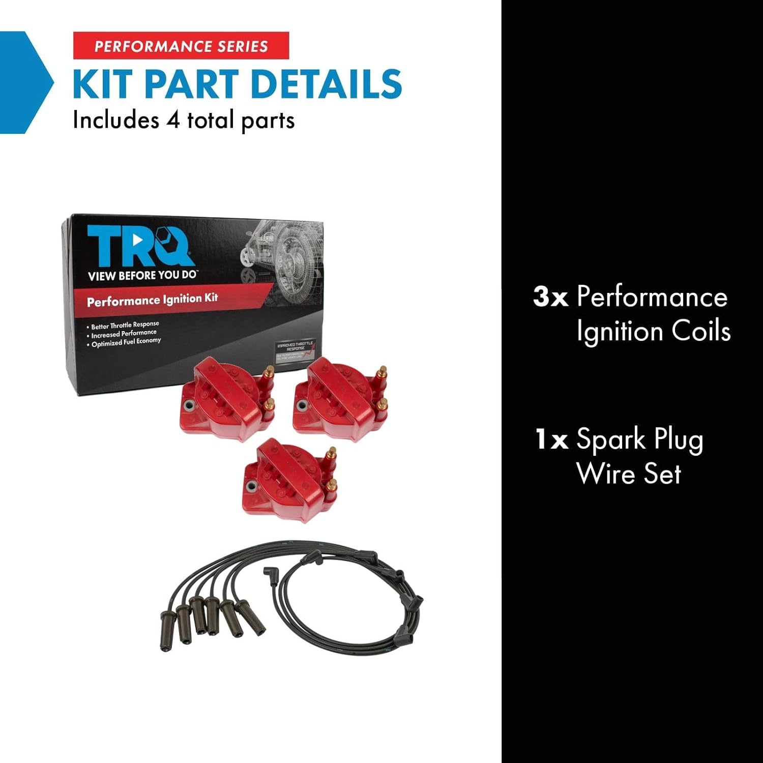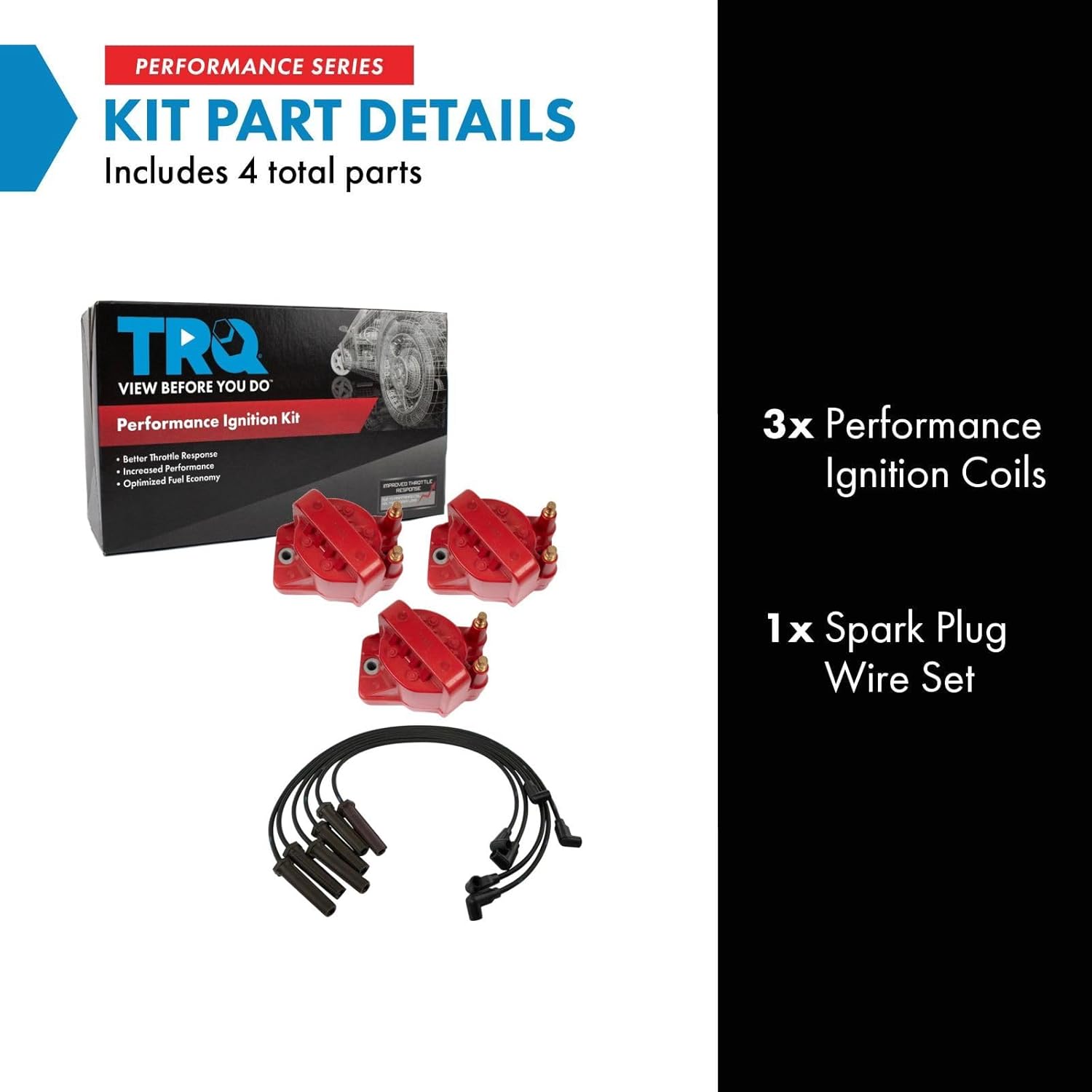 • Kit Includes:(1) Spark Plug Wire Set; (3) Performance Ignition Coils