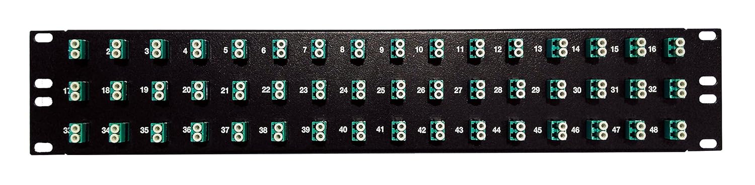 Ultra Spec Cables' 12 Port LC 1U 19" Fiber Optic Patch Panel equips you with an easy and cost-effective way to organize and manage your fiber cabling.The LC Duplex Adapters mount easily into the heavy duty powder coated steel panel. Once assembled and installed they provide an organized, durable solution for long-term performance. The design minimizes installation time for fiber patching and enables hassle-free access during routine maintenance. The panel's sturdy construction allows you to install it almost anywhere.Our Front-access panel simplifies the deployment process, provides easy access organizing/managing your cabling and works well in compact spaces.Ultra Spec's Patch Panels are best suited for High Density Network Environments, like large Server Rooms or Data Centers, where the use of space is vital, instant device to device connectivity is critical and re-configurations are inevitable.