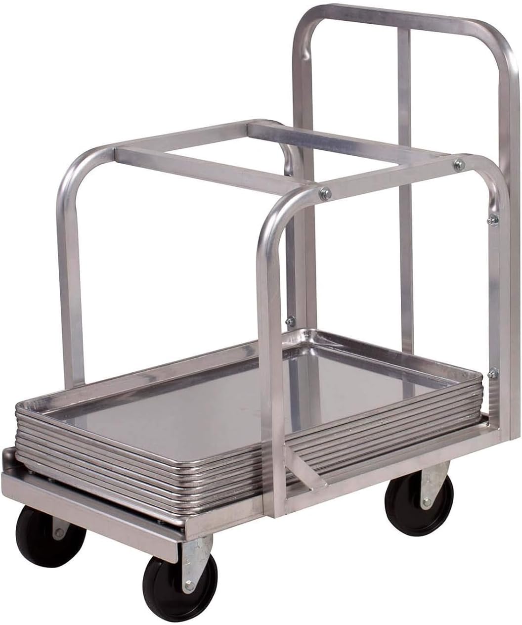 The Winco ALRK-10 aluminum sheet pan / bun rack offers storage for multiple 18” x 26” sheet pans in one convenient location. This sheet pan rack is made from heavy-duty aluminum and can hold up to 400 pounds making it ideal for daily use in even the most demanding restaurant kitchens and bakeries. Each tier is spaced 3” apart allowing this rack to be used for a variety of foods. The (4) 5” casters allow the rack to be easily transported and maneuvered allowing it to be relocated to different workstations. The rack ships knocked down and is easy to assemble. Fully assembled dimensions are 21″L x 26-1/2″W x 39″H. NSF listed.