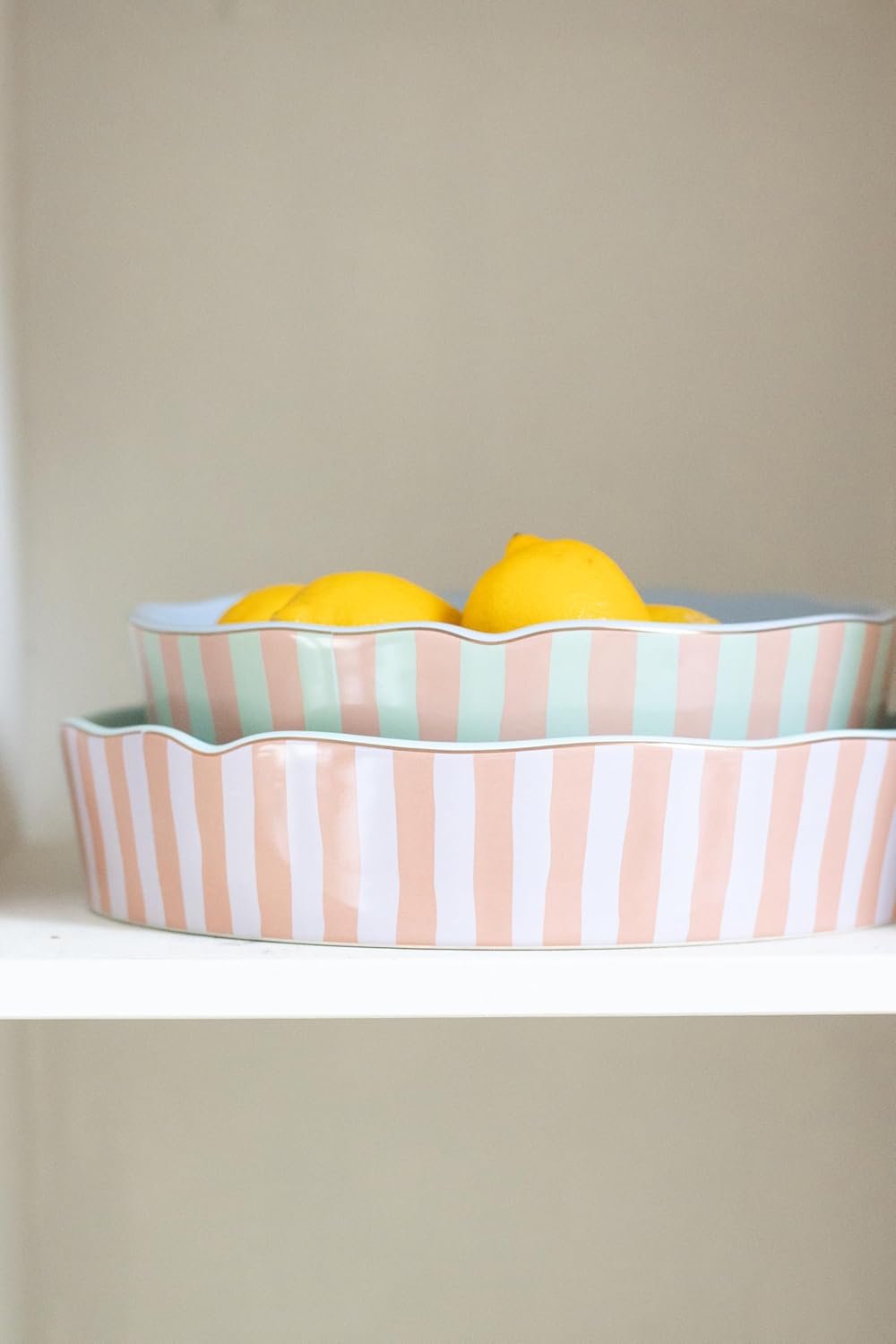 Mix and match with our range of oven dishes to elevate your everyday meals and special occasion dinners. Pink and mint stripes decorate the side and a lilac inner with gold detailing finishes the perfect roaster for your collection.