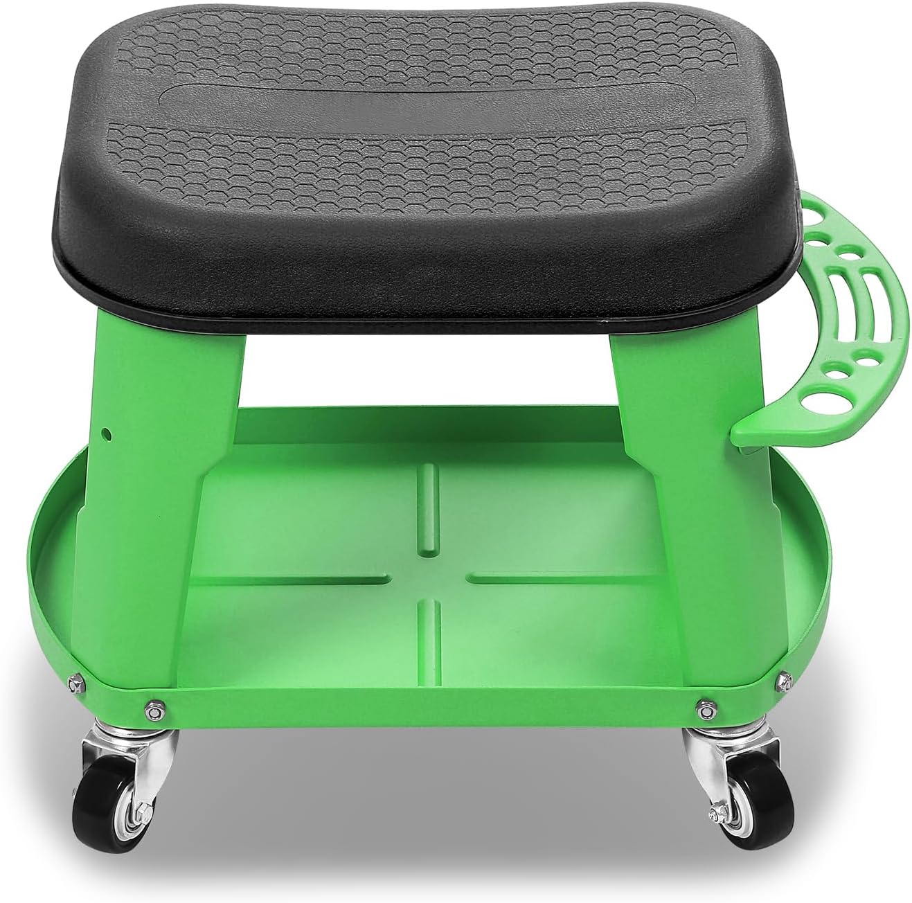 • 【ORGANIZE AND STORE YOUR TOOLS】The garage seat includes a built-in base plate designed to keep small tools and parts within easy reach. With ample storage capacity, you can conveniently carry essential supplies such as car care or repair tools while working.