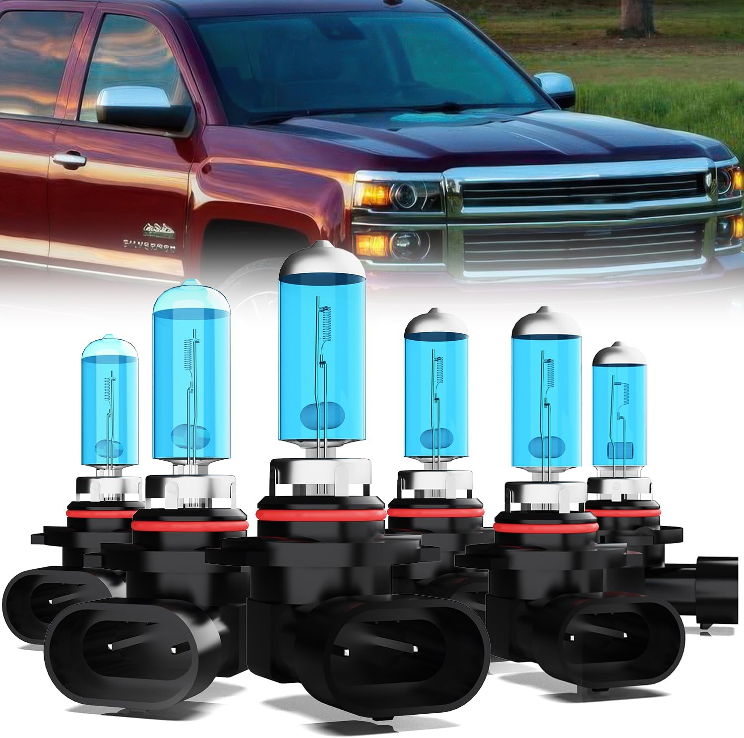 | Included Components | 2 PCS 9005 High Beam Halogen Bulbs; 2 PCS 9006 Low Beam Halogen Bulbs;2 PCS 880 LED Fog Lights; 2 PCS License Plate Lights |