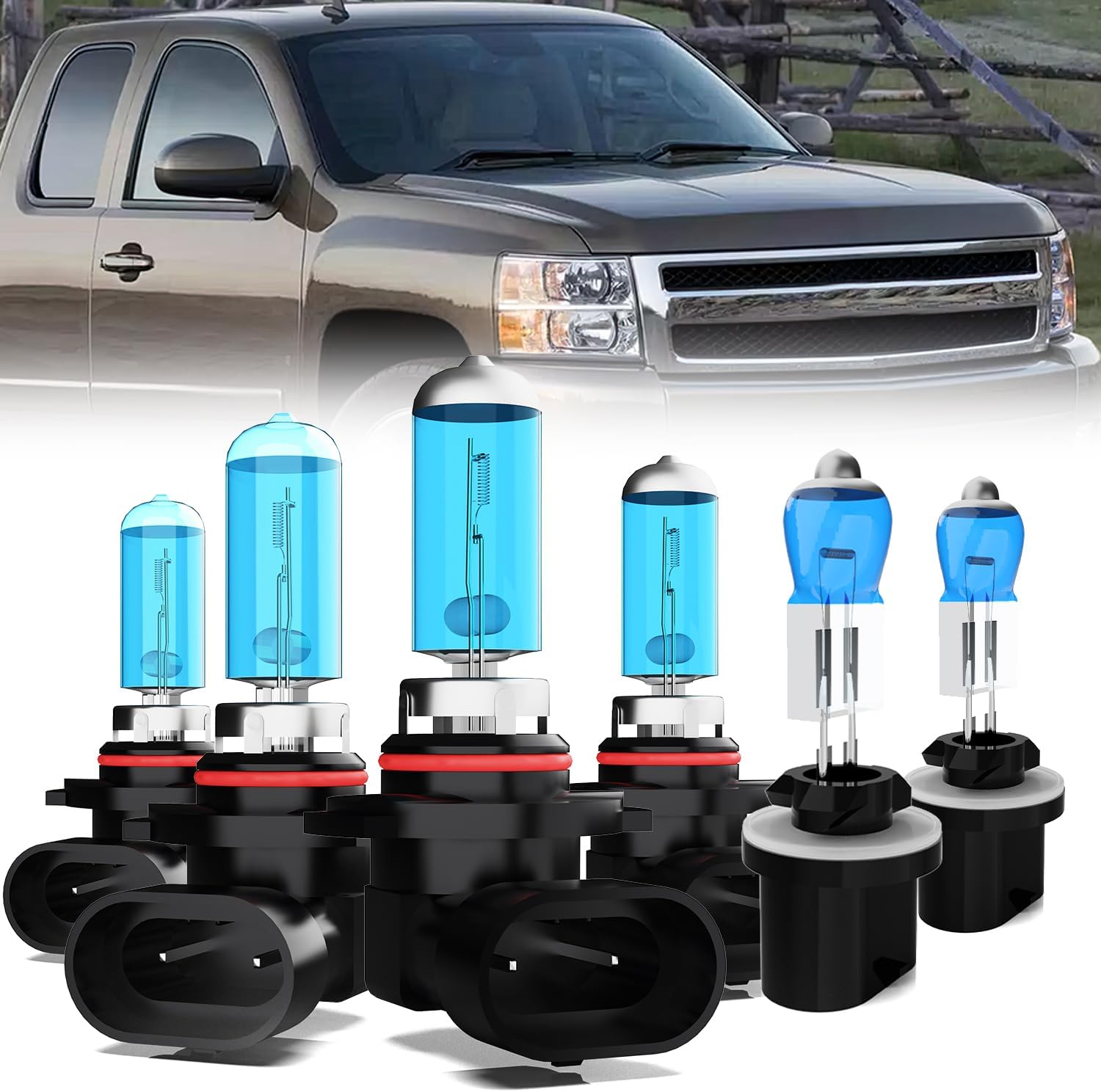| Specific Uses For Product | 2 PCS 9005 High Beam Halogen Bulbs; 2 PCS 9006 Low Beam Halogen Bulbs;2 PCS 880 Halogen Fog Lights and License Plate Lights Compatible With Chevrolet Silverado 2500 1999-2002 High Low Beam,Fog Lights and License Plate Lights |